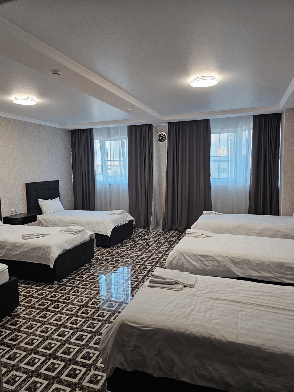 Во всех номерах: есть холодильник, чайник, фен, телевизор, тапочки, средства гигиены полости рта. Все номера большие (от 44 кв/м до 104 кв/м), в каждом номере свой санузел с душевой.