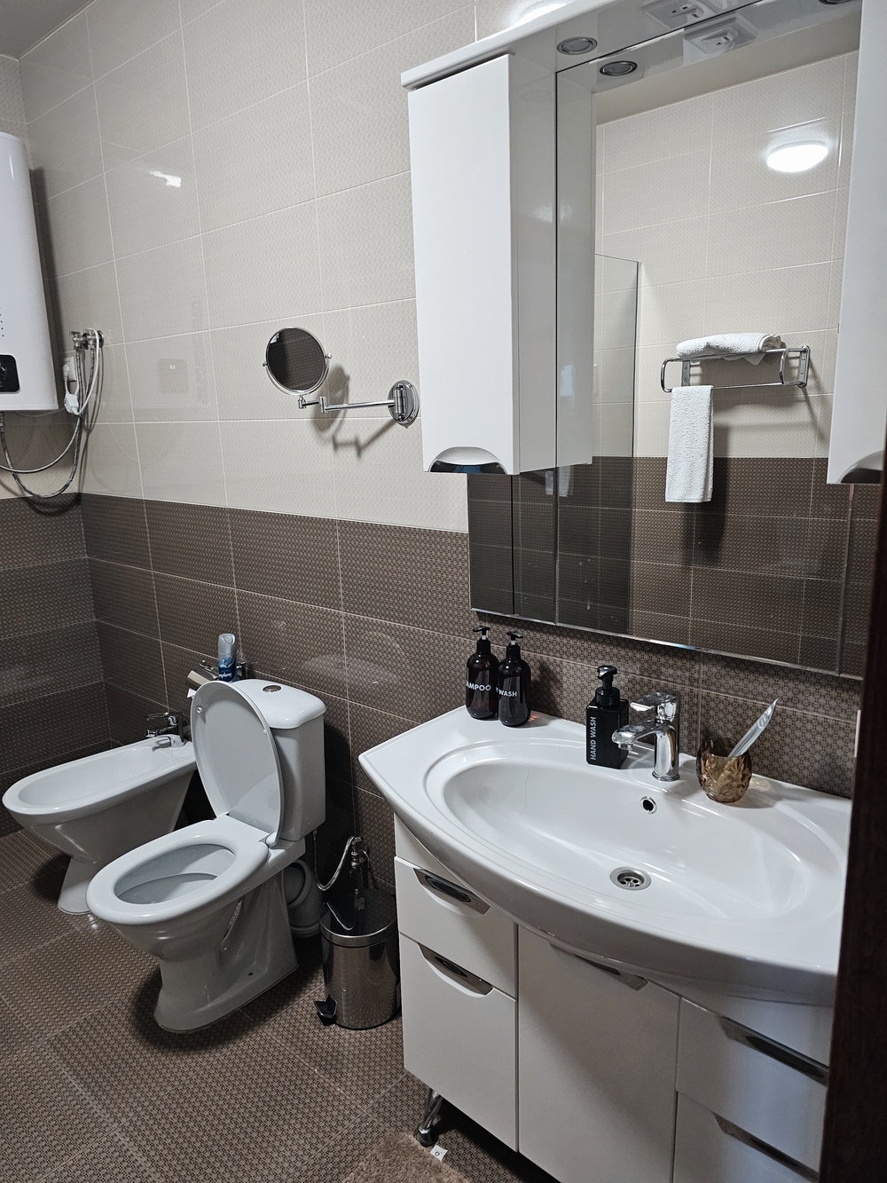 Во всех номерах: есть холодильник, чайник, фен, телевизор, тапочки, средства гигиены полости рта. Все номера большие (от 44 кв/м до 104 кв/м), в каждом номере свой санузел с душевой.